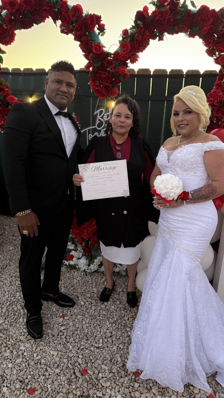 Every love story deserves to be celebrated in a way that feels authentic and meaningful. With more than 5 years of experience, Oficiante De Ceremonias is a licensed and bilingual wedding officiant team committed to creating ceremonies that reflect each couple’s unique bond. We take the time to understand your story and craft a celebration that feels genuine and heartfelt. Whether you envision a simple civil wedding officiant ceremony, a spiritual religious wedding officiant service, or a timeless traditional wedding officiant experience, we ensure that every word and moment captures your love and connection.